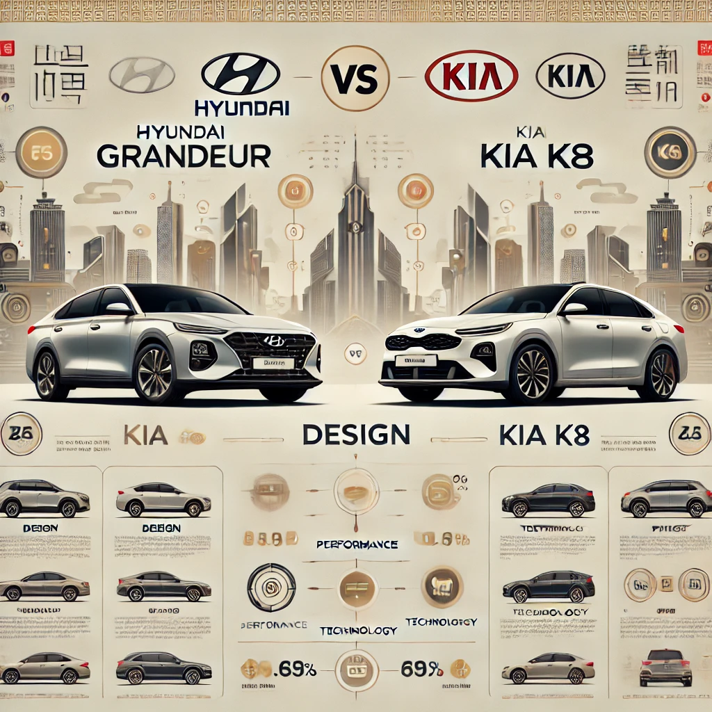 👉 그랜저는 클래식한 고급스러움과 미래지향적인 디자인을, K8은 날렵하고 스포티한 감성을 강조합니다.